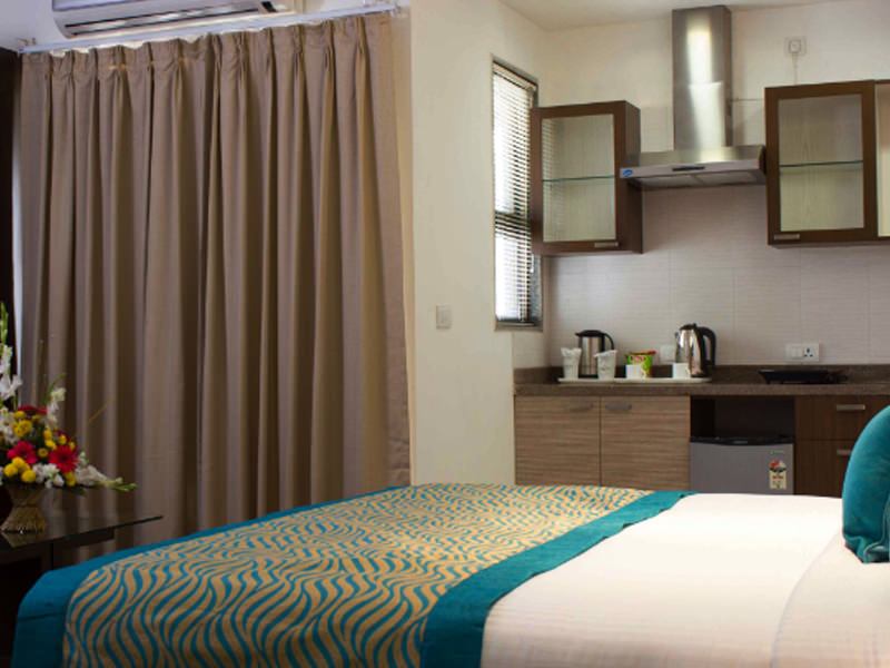 Executive Room comes with little larger lounge space for easy movement than our Deluxe Rooms. Few of our Executive Room also comes with a Balcony. A Study Table and Chair to keep you at ease when you wish to work. Rest of the inclusions and Décor remains the same as our Deluxe Room including the Compact Modular Kitchen with Mini Refrigerator with Microwave & Hot Plate on Demand. You can also ask for a Deluxe Room with twin beds for guests with Double Occupancy who don’t like to share their bed.